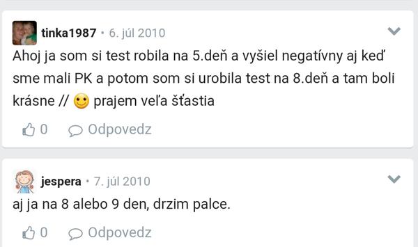 @semisa dnes je to 10 den, dnes by som aj mala dostat menstruaciu, co je ale u mna velmi otazne kedy ju dostanem kedze koli PCO som nikdy nemala pravidelnu, avsak rano som si nasla spinenie, tak teraz dufam ze je to to uhniezdenie a nie priznak ze prichadza menstruacia. Ale nedalo mi to a spravila som si aj test. Biely jak sneh zasa 😢