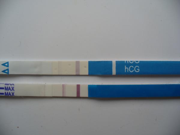 Hodím fotku, testy jsou dělaný ze stejný moče. vrchní je mamatest a spodní Pregnant.