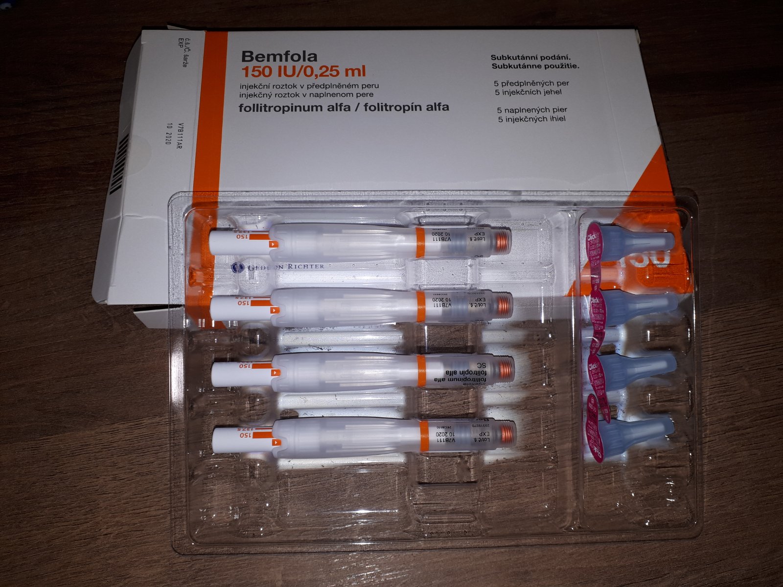 #bemfola 150IU, z 5ks ostali 4ks, platila som 73€, predam za 59€. Expiracia 10/2020