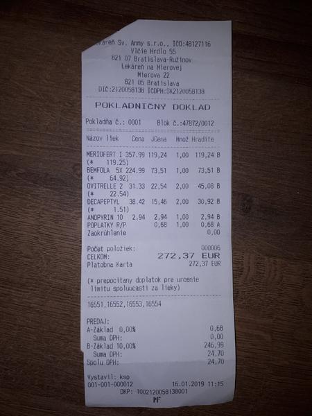 #bemfola 150IU, z 5ks ostali 4ks, platila som 73€, predam za 59€. Expiracia 10/2020