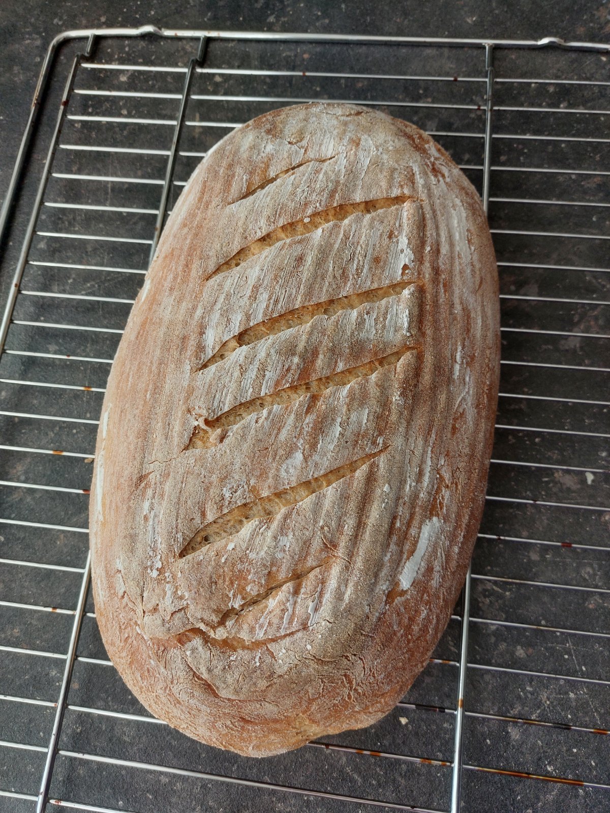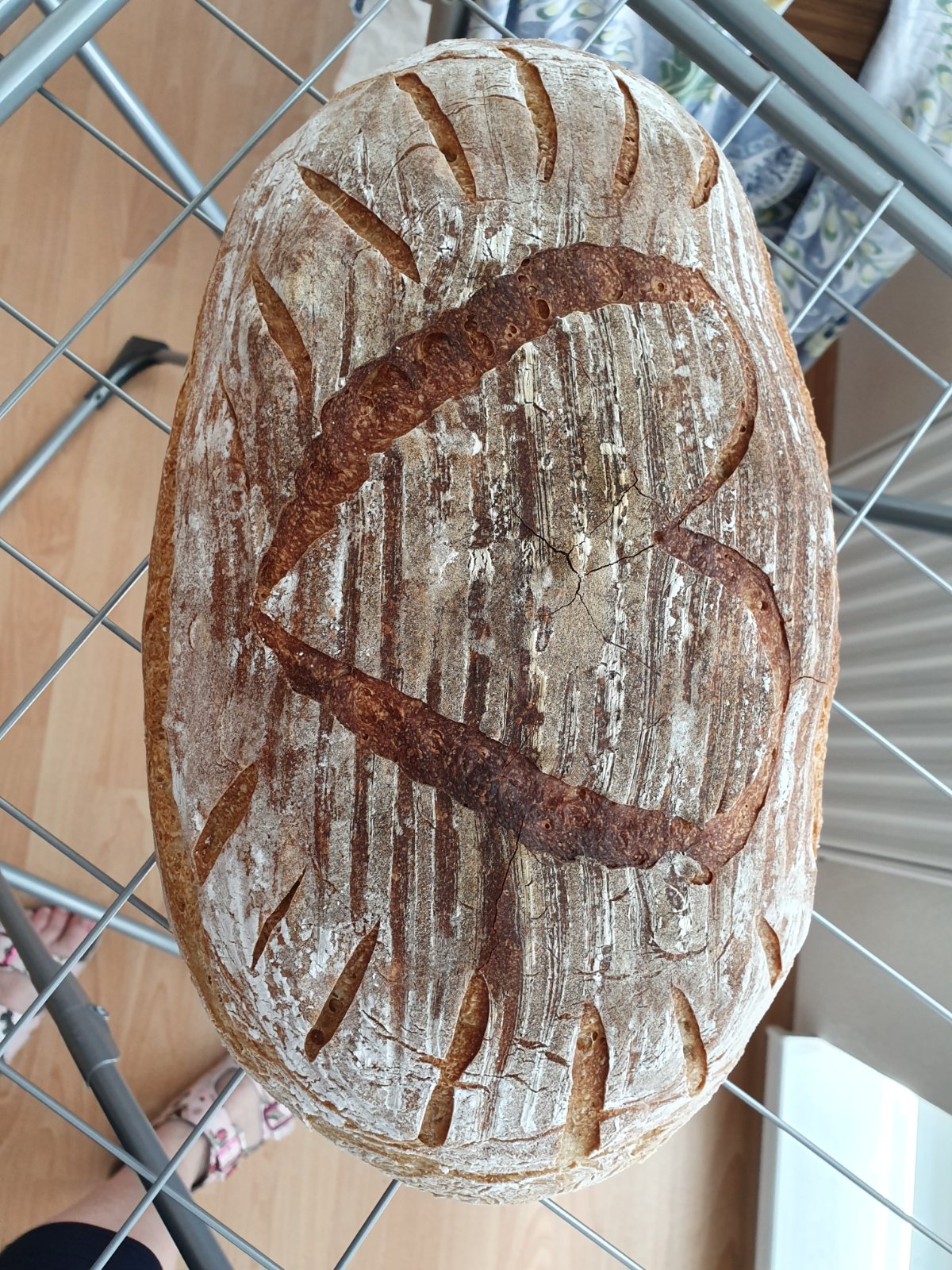 @jarrys na to ze je to prvy chlieb po vyse 2 rokoch nevyzera najhorsie. Este ked vychladne uvidime ako chuti,snad nebol prekysnuty.