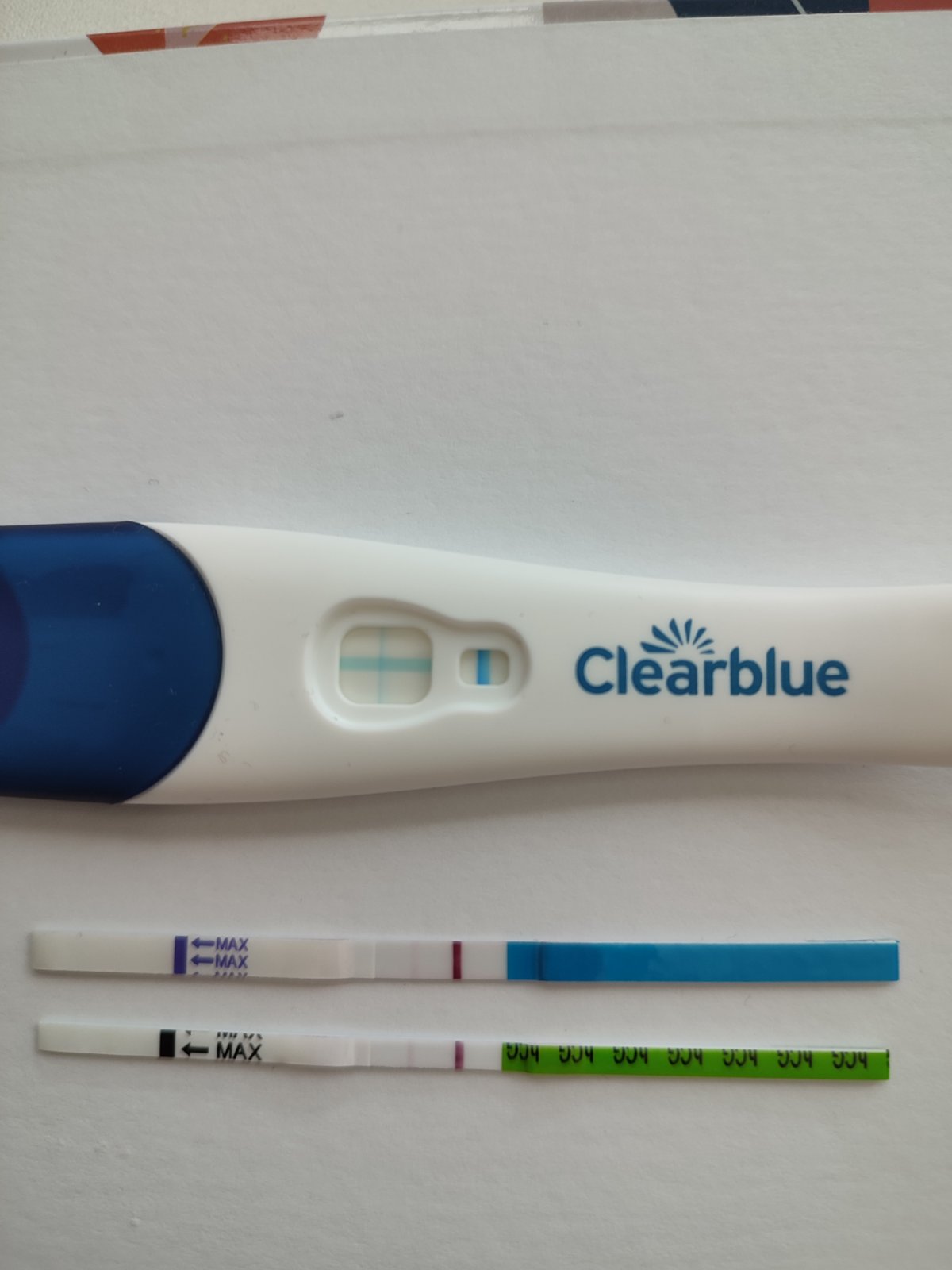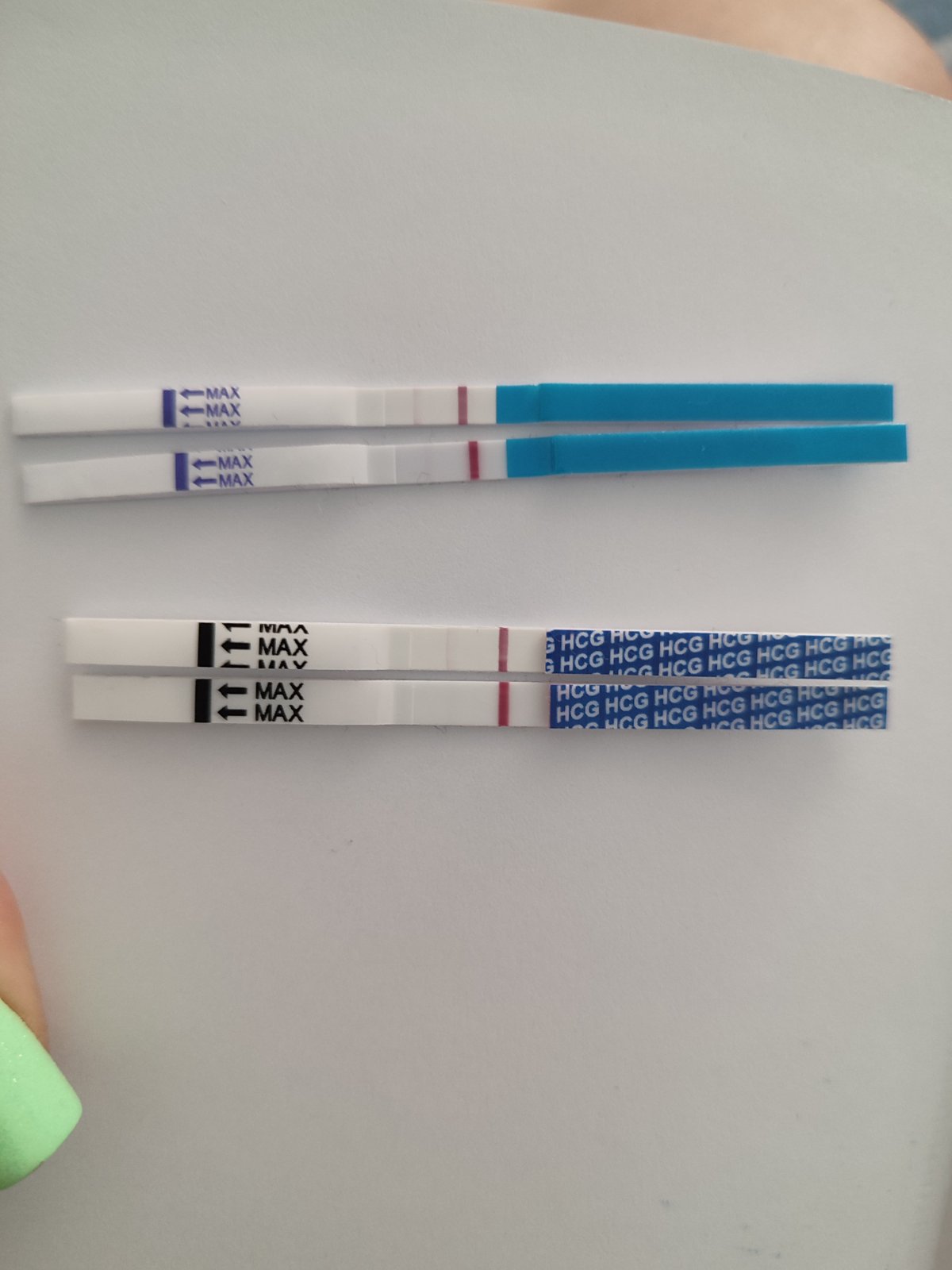 @marinecka95 clearblue je ešte zo včera a spodná dva sú dnešné ešte nezaschnute robené asi 5 min dozadu 🥰 na 6dpt som veľmi spokojná a už len nech silnejú ❤️
