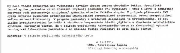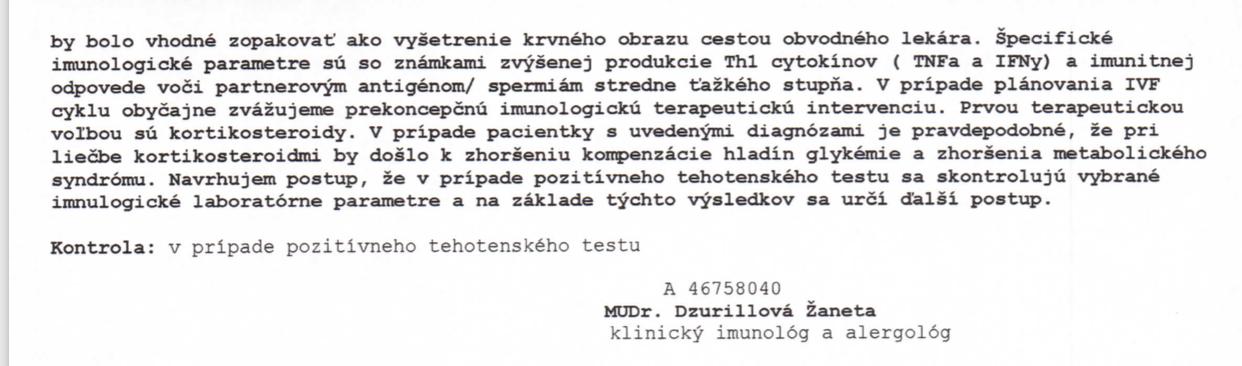 @wanda52 Mne Medrol upravil len NK bunky. Odpoveď na spermie vôbec nie (ťažký stupeň). Preto možno navrhla zmenu liečby. Aj s lekarkou z CAR som sa rozprávala o tom, či ísť do IVF počas liečby Medrolom alebo nie. Povedala, že záleží len od lekárky z imunológie, čo mi odporúčí. Tá mi napísala že by počkala do kontrol.odberov. Tie sa teda však veľmi nezlepšili. Ešte dám šancu tým imunoglobulínom.