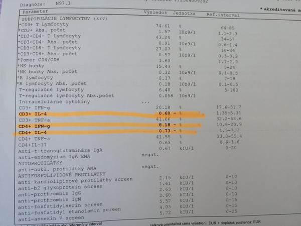 @luciag2809 ja som tak mala teraz naposledy...obe CD 3+ IL-4 znížené, CD3+ IFN-g a CD3+ TNF-a zvýšené. Na imunologii mi dala lieky zas na tie zvýšené a keď som sa jej spýtala že čo s tými znizenymi tak mi povedala že tie nás nezaujímajú že tie s potratmi nič nemaju🤷‍♀️ Keď som sa jej spýtala že tak prečo sú nízke ani mi nevedela odpovedať že tam je veľa faktorov ale že tie nie sú pre nás podstatne...asi tak🤦‍♀️😡