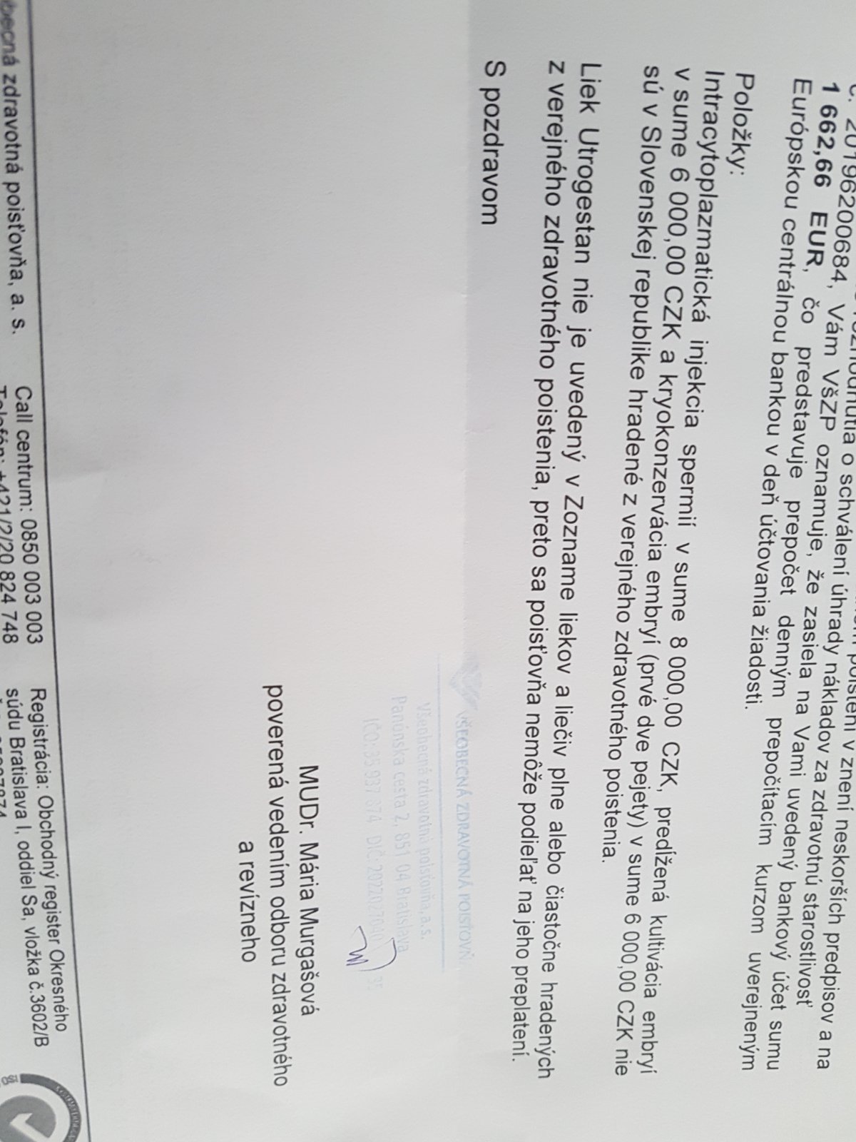 Zaujíma ma aj, kedy vám poisťovňa vrátila peniaze na účet. Viem, že celé to budeme platiť my, a potom nám majú určitú čiastku doplatiť.