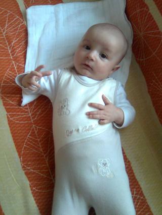 alexko ma dnes 5 mesiacov, minuly tyzden bol chory - sopliky, kasel, trosku zvysena teplota, ale uz je zdravy, dostal druhu varku vakciny na rotavirusy, vazi 7060 g, takze super 🙂