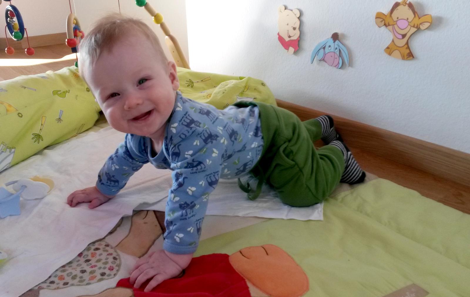 Ockovanie zvladol dobre, vecer bol trochu umrncany zlatusik nas a nadranom dasienka boleli. Inak sa mame fajn, drobec je velmi aktivny, dava pokusy o lezenie, zdviha s na styri, otaca sa na brusko, otacanie na chrbatik mu este moc nejde, to si buchne pri tom hlavicku :( a je velmi komunikativny a vysmiaty..ked ho prave dasienka nebolia. Radost nasa najcacsia.