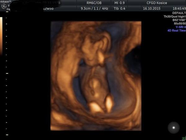 Dnes som bola na kontrole.Vraj to je akrobatka,nožičky mala vystreté,chodidlá za hlavou.ale v tomto období často menia polohu,všelijako,majú ešte dosť miesta.