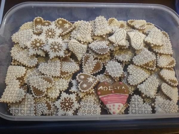 @tinkatinulka Ja zatial takto 🙂 Napecene uz mam, len zdobenie ide pomalsie, lebo malej sa nepaci , ked sedim za stolom a zdobim. Kope ako divoska, tak pol hodku pozdobim a hodinu oddychujem 😀 Ale kedze som mala nariadene "domace vazenie" 😀 tak mam paradnu zabavku na kratenir casu.