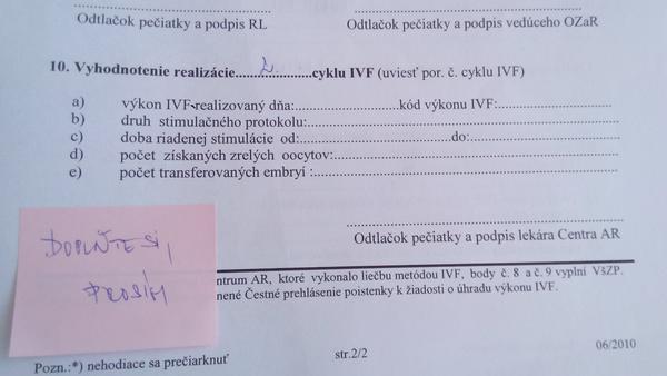 Dobré ránko viem, že sa tu to milionkrat pisalo, ale v týchto niekoľko tisícových stranách listovať a hľadať je ťažké a preto sa chcem spýtať, že mám žiadosť do poisťovne na preplatenie ivf, kde mi brno všetko vypísalo do žiadosti a teraz mám zobrať na podpis ku svojmu gynekologovi, od gynekologa potrebujem len podpis a pečiatku alebo tam niečo má aj dopísať?lebo som s ním telefonovala a on nevie alebo resp. sa ešte s takým nestretol, že na žiadosť potrebujem aj jeho podpis a pečiatku a že vraj potom mám ešte zobrať do univerzitnej do Košíc. ďakujem