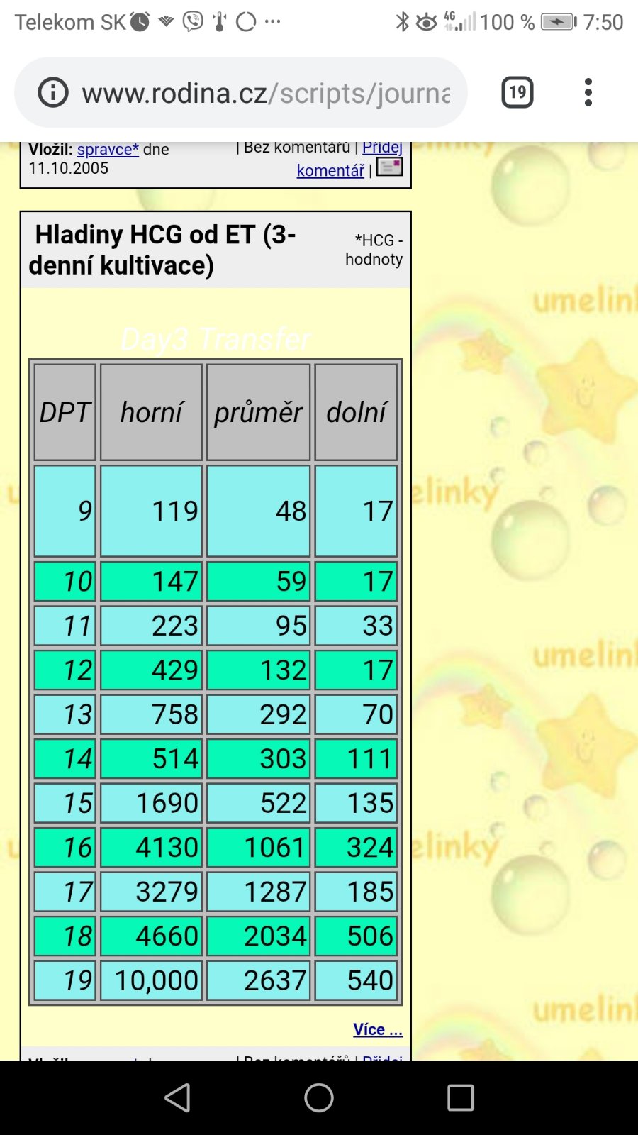 Som veľmi rada že si s bublinkou šťastlivo dorazila domov...veľmi som na vás myslela...inak tu sú tabuľky pre hcg po KET...ET❤️😘😘😘🍀🙏