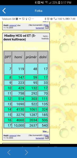 @lilly79 ti poviem a toto mam ze spomalene tempo 🤣😂🤷♀️ hej teraz bude krv na 14 den toto je tabulka hcg co @zuzik5891 mi posunula. Ja som mala 865.48 a v heliose povedali ze som tehotna a je to dobre ked som im volala 😊 potom by malo nasledovat sono, na svk ti robia sono aj den krvi myslim a potom v heliose vravela ze 5 dni po pozitivnej krvi sono na potvrdenie a o dalsich 10 dni potom na srdiecko alebo tak nejak. Ja sa to stale snazim dobojovat na to sono nejake. :(