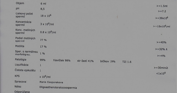 @luciik2111 ahojte ja tiež sa ne viznam v ticho hodnotach bolisme v var a mame taketo vysledki a rovno nas poslali na ivf.ešte sme mladi tak chceme dat šancu na prirodzene otehotnenie podla vas je to možne?tu vam pošlem vysledki prosim odporučajte.aku mam morfologiu a aka ma byt norma ne viznam sa dakujem