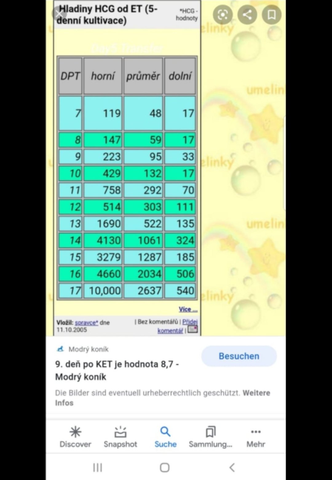 Síce moje hcg nieje až take vysoké ale doktor povedal že je to primerane a aj individuálne u každej. Dúfam že bude pekne rásť ako ma a o 2 týždne na sone bude všetko ok a bude všetko vidieť.