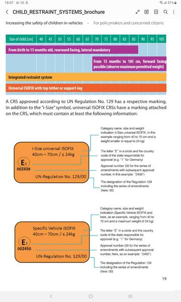 .... takze ak ma niekto stare auto, musi si davat riadny pozor, ci ho ma v zozname s povolenym pouzitim R129, alebo nie. Ak nie, musi si kupit starsiu sedacku a tu pouzivat podla predpisov na nu platnych, alebo novsiu R129, ale s univerzalnym kompatibilnym uchytenim.