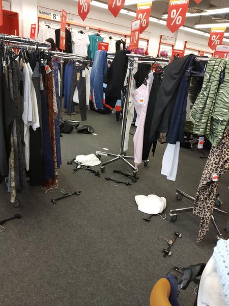 @iveska dnes o 14 KiK vyrabovany. Všade spoluobčania. Koše naplnené až sa vysypovalo z nich. Oblečenie po zemi, ľudia po Tom šľapali. Kultúru národa nepoznáš podľa záchoda, ale podľa správania počas výpredajov 😂😂 takto to vyzeralo dnes v KiK, spravila som jednu fotku, tak aby nebolo nikoho vidno. Miestami to vyzeralo aj horšie
