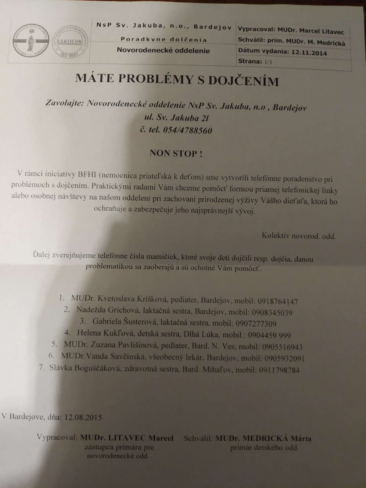 Laktačná poradkyňa v okrese Bardejov