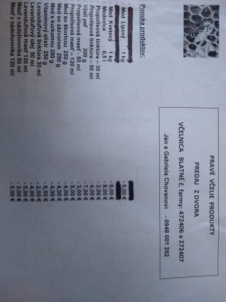 Vcelarstvo Kiss z Cenkoviec, pan chodi predavat kazdu sobotu na trh v Pezinku a v Senci
