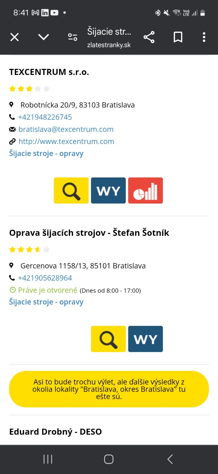 Ahojte, pokazil sa mi šijací stroj a celkom nutne ho potrebujem opraviť.. viem že tak dokonale riešenie asi nenájdem, ale potrebujem zohnať niekoho kto by mi ho vedel rýchlo a lacno pozrieť, tým že stále slape a je problém s tlakom iba, možno by sa nemuseli meniť súčiastky.. ďakujem za každý tip 🙂