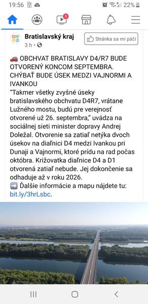 Nemáte niekto informácie kedy otvoria lužný most v Bratislave? aspoň úsek z Petržalky do Rovinky?
