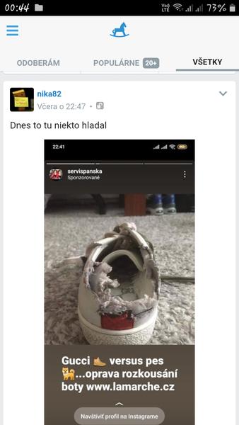 Ahojte, prosim vas nezachytili ste niektorá na ig alebo fb reklamu na opravu topánok kde je na tej reklame totalne rozkusana gucci teniska a tie topánky po repase su jak nove ? Neviete niekto kde by sa take nieco dalo opravit pripadne nezachytili ste niekto názov tej firmy ? V BA. Dakujem