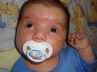 Dúfam že tým všetkým skoro prejdete. Pripájam foto drobca,kde to trošku nad očkami vidieť,ale je to nakrémované.Aj jednu z kúpania...