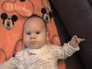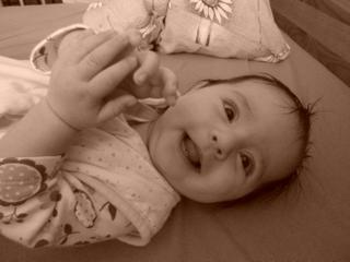 ale inak maly je zlaty,uz nam idu zubky dnes povedala pani doktorka,žužleme si pasticky,je to take milene,usmievame sa o 100,300,ked ma vidi,tak sa tesi tak velmi,kope nozkami ruckami a usmev od ucha k uchu,hlavne ked nesiem mliecko o 1 rano 😀