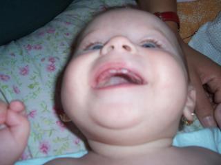 @seagull2404 ahoj zubky mozu ist najprv aj horne a aj dva naraz ako nasej lucinke a to dr. povedal ze jej zubky nejdu a ja ze idu hore a on len pokrutil hlavou ze najprv vyjdu dole ale tu je foto mala vtedy necelych 7 mesiacov