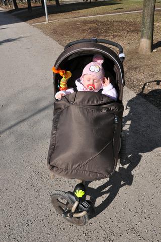 dnes sme boli vonku aj v obchode a rachel chvilu sedkala v kociku a pozerala na svet potom som ju dala spat lezkat a zaspinkala tak teraz dospava doma v kociku