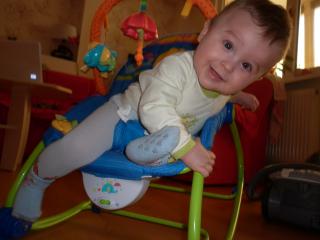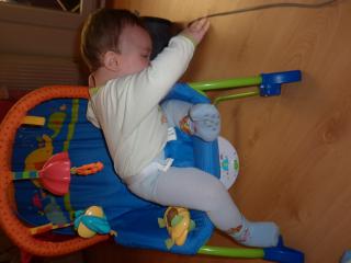 Inac aj moj sa stale takto nahyna do predu. Tiez nechapem...najnovsie to robi, ked ho krmim. Stale s ami nahyna dopredu - a to je v pololehu, v takej sedacke.
