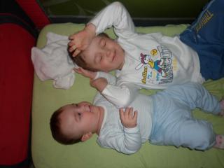 semi spal od cca 7.30-11.20 😨 ale to dospaval noc 🙄 pre zmenu teraz spi Pati 😀 a maly kuka mickey mouse 😀