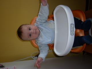 stolicka sa neda polohovat, doteraz som ju krmila v tom detskom lehatku a teraz ked uz vie posediet sama davam ju do nej