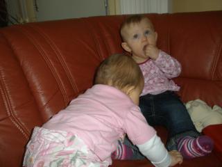 @majka35 krasna je Barborka, ale podoba sa strasne (teraz myslim sama so sebou, lebo Terezka je ako jej protipol) 😀 Timka je na tej foto asi o mesiac starsia ako Karinka teraz a tiez mala hustejsie vlasky, ale inak maju uplne rovnakej farby a ocka maju ako cez kopirak 😵