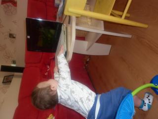boli sme vonku na prechádzke,celu cestu vykrikovala na ludí jéééééééééééééééé,áááááááá,hááááááááá........ 😀 my vždy ked idemem do mesta tak sa Nelinka postará aby sme boli stredobodom pozornosti 😀 mm to nemá rád ked sa na nás pozeraju on by najredšej išiel po kanáloch 😀 robí to aj v obchodoch a všade v poslednom čase 😀