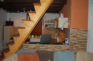 neni to nic moc, ale ja sa neskutocne tesim. na tomto mieste bola kotolna a ja som zburala priecku, tka mam kuchynu s obyvackou. vsetko co vidite na foto mi preslo rukami a najvacsia pycha. aj tie schody som vyrobila. moj tatino mi pomahal vymeriavat, ale zvysok som uz ja. vysli ma 15 eur. v obchode su za 1000eur. :D tak sa setri. robila som to vikend ale stoja za to. na foto este nejsu dofarbene. este take doťuky mi chybaju, ale pracujem na nich. :D