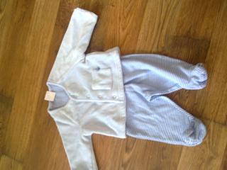 inac baby co cakate chlapceka...babulky mi boli v sekaci na zatah lebo ja uz nemozem a doniesli mi jeden taky zamatovy kabatik podsity bavlnou a jednu supravu poplodupky s kabatikom zamatovym....spolu je to za 4.80 eura...je to uplne v bezchybnom stave.....hodim foto ked sa dostanem z postele...... velkost je 0 az 3 mesiace mothercare