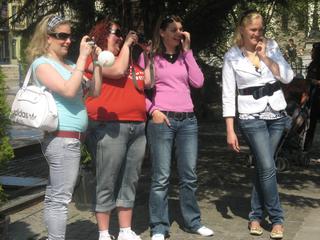 Zuzka je v cervenom, baga v ruzovom, daniela cierne vlasy zelene tricko, Lenka zelene tricko hnede vlasy, zuzkamilko bielo cierna kvietkovana aspon myslim, eviqa v ciernom hnede vlasy pod usi. Ale neviem kto je v ciernobielom pasikovom a neviem kto je v ciernom tricku so srdieckami...