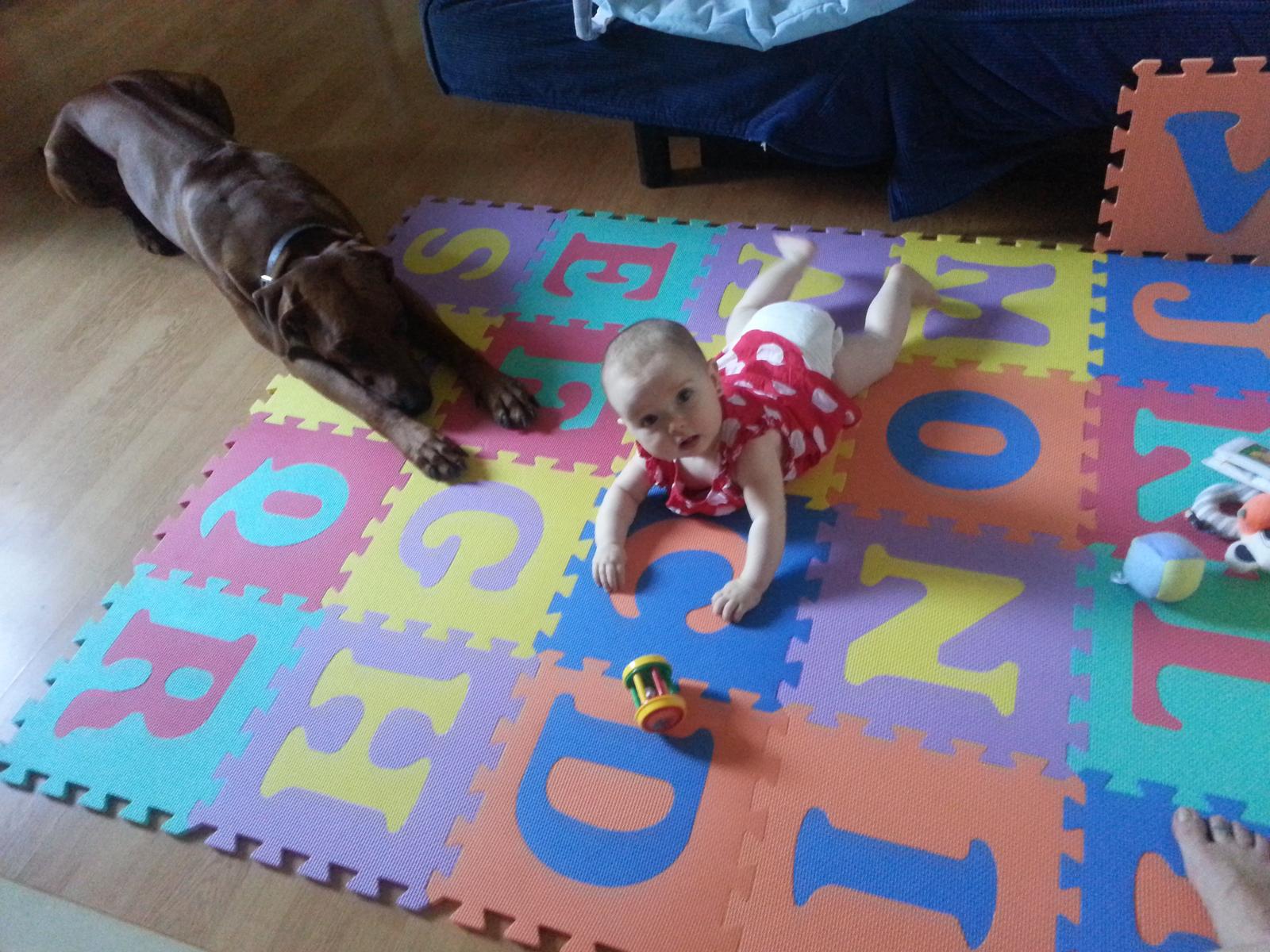prvorodený je náš Dagguško celým menom Ridgeback´s Hiari Daggi náš krásny Ródezsky Ridgeback 😀 my ho voláme náš prvorodený a svokor ho volá môj vnuku 😝 naše 41 kilové teliatko... také veľké telo, to je už ako naše decko 😀 😀 a Monička je jeho malá sestrička... vieš jak sa ľúbia... pokaždé keď sa vrátime domov letí do kočíku jej dať lízanec.. proste musí byť... tvoríme imunitu 😝