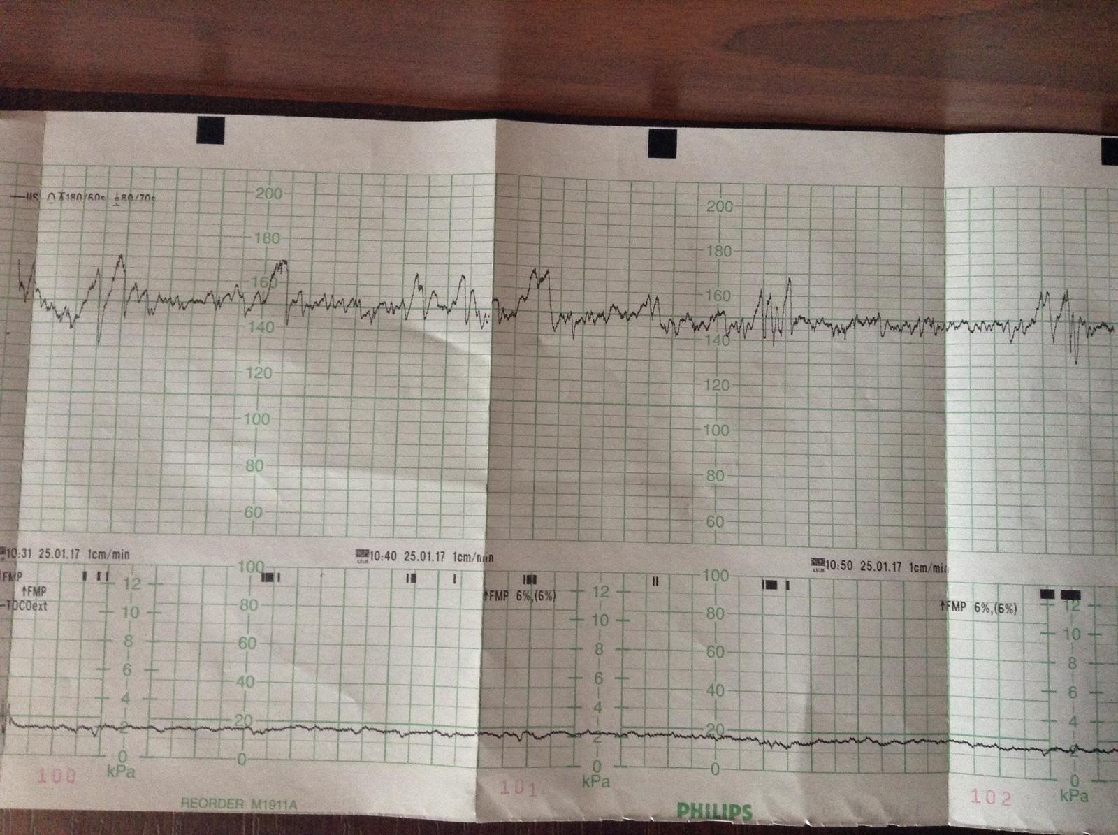 @zuzuk22 tvoje babatko malo aký tep?.. Ja to tam mám tak že to strašne skakalo.. Ty to mas skoro ako jednu rovnú ciaru.. A tam kde zaznamenávajú pohyby babatka mám občas aj nejaké šípky nahor.. To nevieš čo znamená?