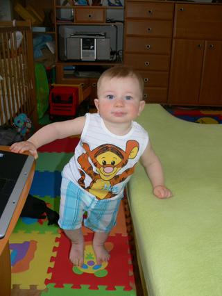 inak, kto ste to tu minule pisali, ze v posteli neviete udrzat dieta, lebo sa stale stavia? uz to dorazilo aj ku nam. uspavame sa na prsku, zrazu si spomenie, ze ma nozky, tak sup o mna na nohy, zase ho polozim, tak sa mi odgula, sup o zadne celo postele na nozky ... a tak dokola. 😒 🙂 ale ako za takymto piseme, aj tak ho luuuuuuuuubim. 🙂 😵 😵