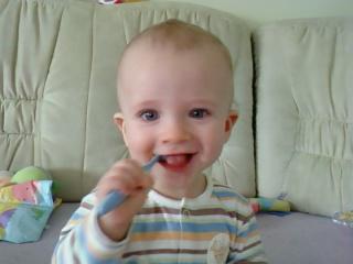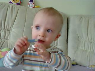nyky...macko má takú istú kefku ako my, aj také isté pyžamko 😀 len zúbkov máme o 5ks viacej 😀 ale mu to ide 😉