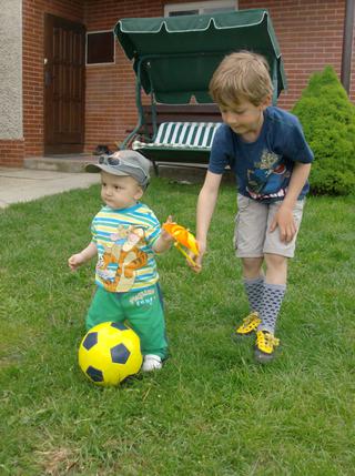 traky...však akú peknú trávu máte pri dome 🙂 a aj super oranisko pieskovisko 😀 Maťko si to užíva lepšie ako pobyt pri mori 😀