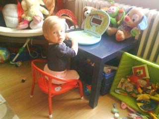 Holky kuki na tu naší potvůrku takhle si hraje roční dítě 😀