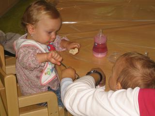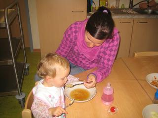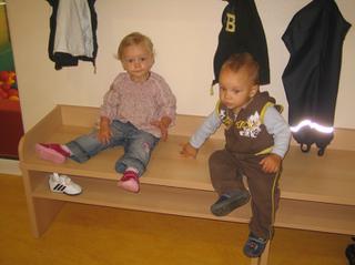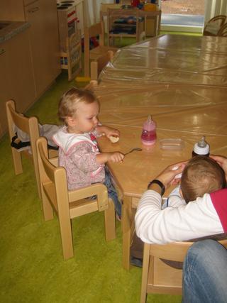 Emča je s Ríšou spolu, aspoň tak, když už jí opustí maminka. Ale to dopo tak rychle uteče...ráno jí přivedu na půl 8, v 9 mají "morgenkreis", zpívají písničky v kruhu, pak sváču, pak jdou ti dva spinkat a probudí se na oběd okolo 12 a v 1 jsem tam pro ní jak na koni 🙂