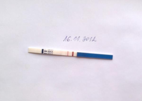 zo zaciatku bola aj teraz ta druha ciarka taaaka slabaaa,ze som uz bola rozhodnuta,ze si dnes kupim iny druh testu....toto je rapiclear.... ale po 10 minutach to stmavlo...v skutocnosti je ta ciarska druha este silnejsia jak na fotke... tak uz dalsi test kupovat asi nemusim,ze 🙂