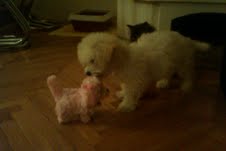 ...a kocúrik je tiež tak isto starý ako ona, takže sú to dve malé klbká a obaja sa hrajú iba 🙂