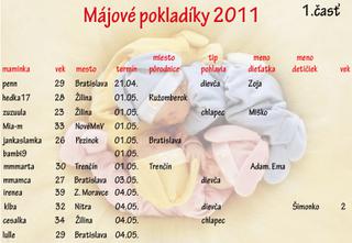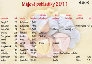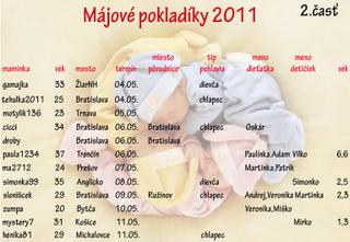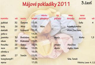 ahojte, aj ja sa pridavam k vam majovym. mam termin 10.5.11 velmi sa s manzelom tesime a prajem kazdej tehotnej vela zdravia, spokojne tehotenstvo, este lepsi porod🙂)