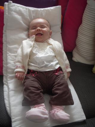 baby, oliv mi pri prebalovani zacala dvihat nozky pokrcene v kolienkach k brusku, hehe...je uzasna, len sa tazsie tak plienka dava, hehehe, popri si cmula pasticku, sleduje, co sa deje x;O)))