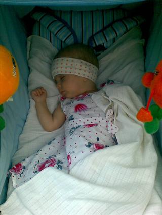 oliv uz driemka s prsom v puse...dala som mokru plienku medzi nas , tak asi ju prijemne ochladieva