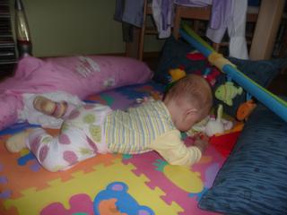 @rivatha ked oliv uz robi tapi tapi, snazi sa aj brnkat ruckou na pusu, i nosteka sa chytit, ju to ucim x;o) ...i ked mas recht...este vcera a predvcerom som ju motivovala prsom aby sa pretacala a dnes to robila zo zabavy...do jednej i druhej strany, na chrbatik i z neho...tak ale aspon viem, ze byt v strehu x;o)